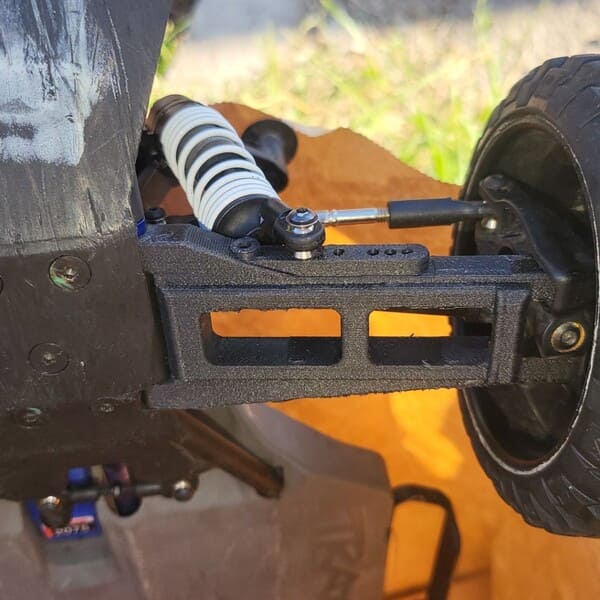 После печати деталь прошла минимальную обработку для снятия поддержек и доводки контактных поверхностей. Готовый элемент сразу был установлен на RC-модель. Все крепления совпали идеально, а тестовые испытания показали, что новый рычаг выдерживает нагрузки значительно лучше, чем оригинальный.