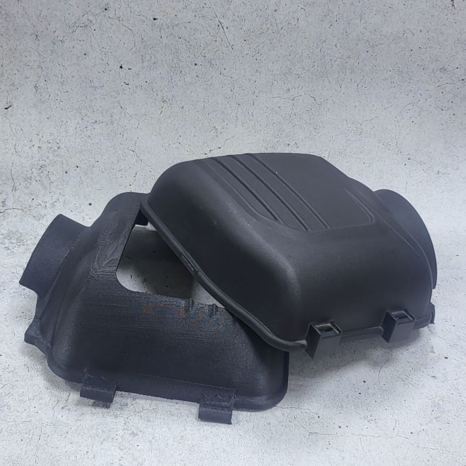 Клиент передал нам оригинальную крышку впускной системы. Она использовалась как референс для точного 3D-сканирования. Деталь содержала сложную геометрию, в том числе участки сопряжения с патрубками, пазы под крепёж, внутренние направляющие, зоны с перепадами высот и радиусами, критичными для потока воздуха.