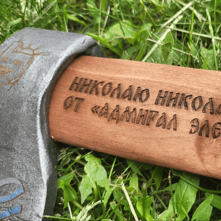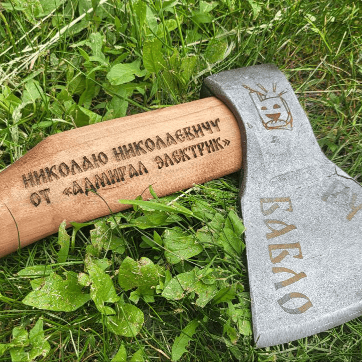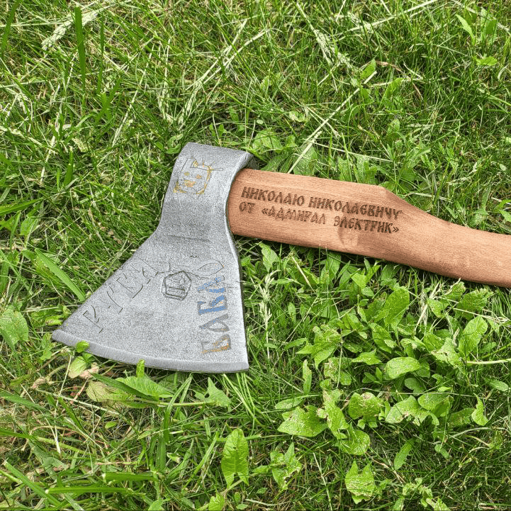 Итоговая композиция получилась цельной, выразительной и характерной. Такой топор — это не просто аксессуар, а персонализированный подарок, несущий в себе смысл и эмоцию.