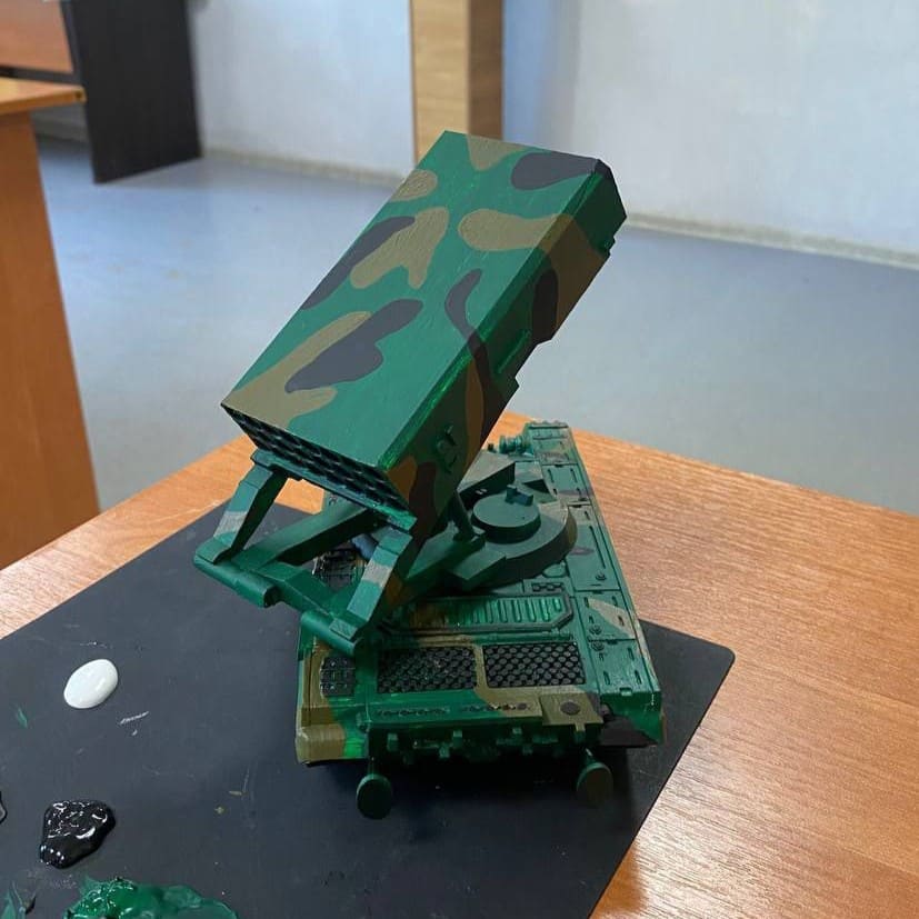 Один из наших постоянных клиентов, увлечённый моделизмом и современной техникой, обратился к нам с задачей напечатать масштабную статичную модель тяжёлой огнемётной системы ТОС-1А «Солнцепёк», известной как одна из самых узнаваемых и мощных артиллерийских машин в современной военной технике. Главной целью проекта было получение визуально насыщенного, детализированного макета в крупном формате, пригодного для последующей покраски и демонстрации.